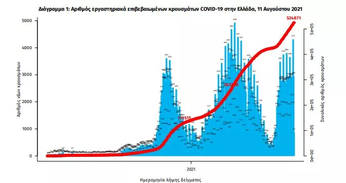 Τα νέα εργαστηριακά επιβεβαιωμένα κρούσματα της νόσου που καταγράφηκαν τις τελευταίες 24 ώρες είναι 3.475, εκ των οποίων 15 εντοπίστηκαν κατόπιν ελέγχων στις πύλες εισόδου της χώρας.