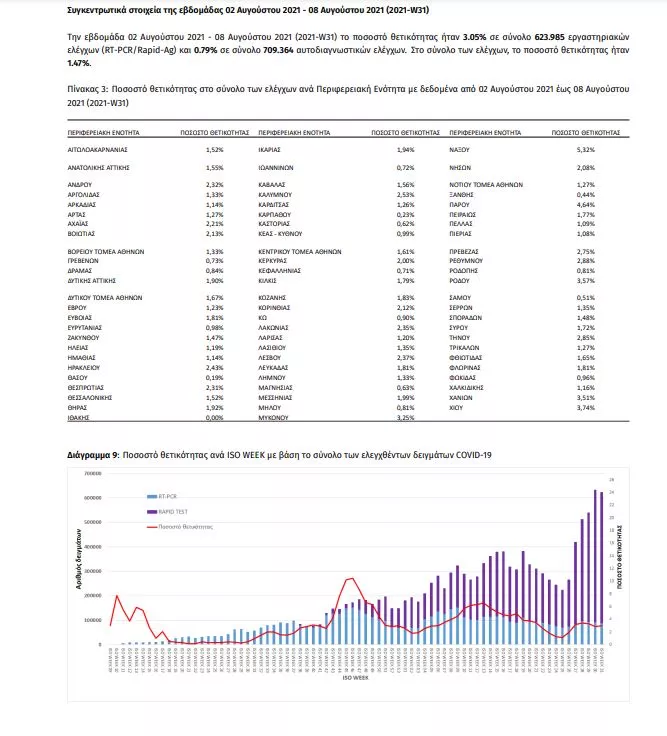 Έγιναν 88.069 τεστ και η θετικότητα υπολογίζεται σε 3,95%.