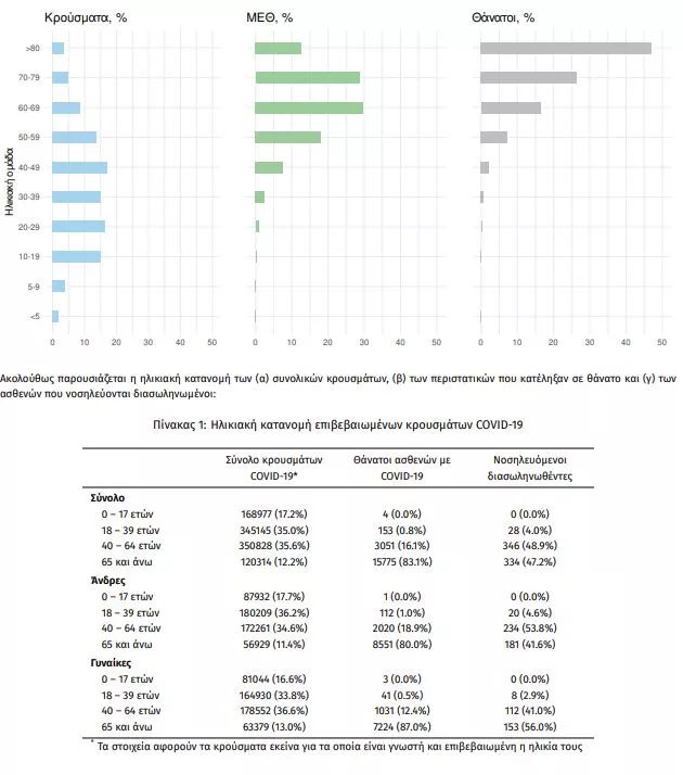 Οι νέοι θάνατοι ασθενών με COVID-19 είναι 81, ενώ από την έναρξη της επιδημίας έχουν καταγραφεί συνολικά 18.982 θάνατοι. Το 95.3% είχε υποκείμενο νόσημα ή/και ηλικία 70 ετών και άνω.
