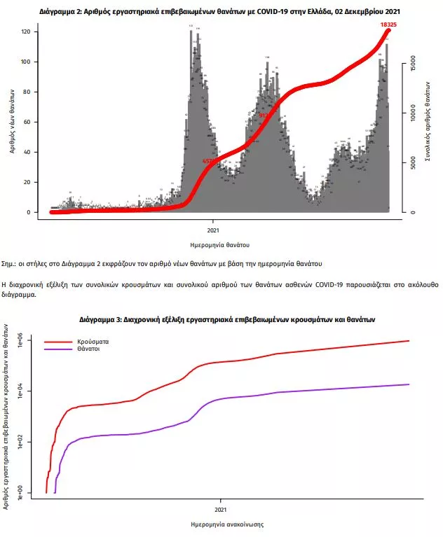 Οι νέοι θάνατοι ασθενών με COVID-19 είναι 89, ενώ από την έναρξη της επιδημίας έχουν καταγραφεί συνολικά 18.325 θάνατοι. 2 Το 95.4% είχε υποκείμενο νόσημα ή/και ηλικία 70 ετών και άνω.
