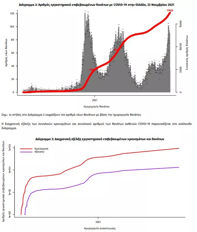 Οι νέοι θάνατοι ασθενών με COVID-19 είναι 105, ενώ από την έναρξη της επιδημίας έχουν καταγραφεί συνολικά 17.425 θάνατοι. Το 95.4% είχε υποκείμενο νόσημα ή/και ηλικία 70 ετών και άνω.