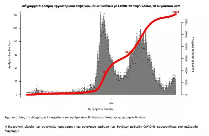 Οι νέοι θάνατοι ασθενών με COVID-19 είναι 30, ενώ από την έναρξη της επιδημίας έχουν καταγραφεί συνολικά 13.328 θάνατοι. Το 95.2% είχε υποκείμενο νόσημα ή/και ηλικία 70 ετών και άνω.