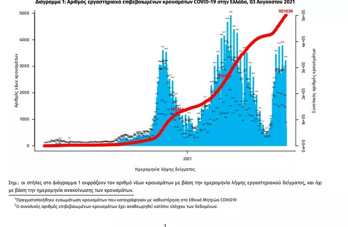 Τα νέα εργαστηριακά επιβεβαιωμένα κρούσματα της νόσου που καταγράφηκαν τις τελευταίες 24 ώρες σύμφωνα με τα στοιχεία του ΕΟΔΥ είναι 3.428