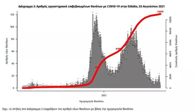Οι νέοι θάνατοι ασθενών με COVID-19 είναι 14, ενώ από την έναρξη της επιδημίας έχουν καταγραφεί συνολικά 12.997 θάνατοι. Το 95.2% είχε υποκείμενο νόσημα ή/και ηλικία 70 ετών και άνω.