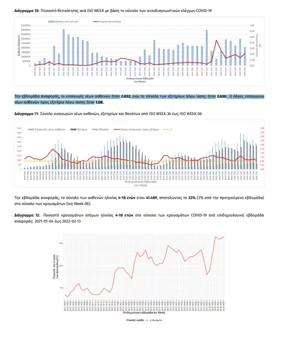 Όπως αναφέρουν συγκεκριμένα τα στοιχεία, το σύνολο των ασθενών ηλικίας 4-18 ετών είναι 41.489, αποτελώντας το 33% (3% από την προηγούμενη εβδομάδα)