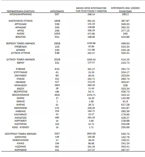 Αναλυτικότερα τα κρούσματα στις περιφερειακές ενότητες που ανήκουν στην Αττική: