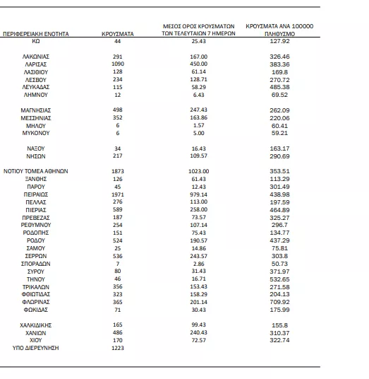1.223 κρούσματα υπό διερεύνηση