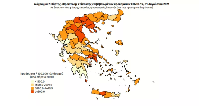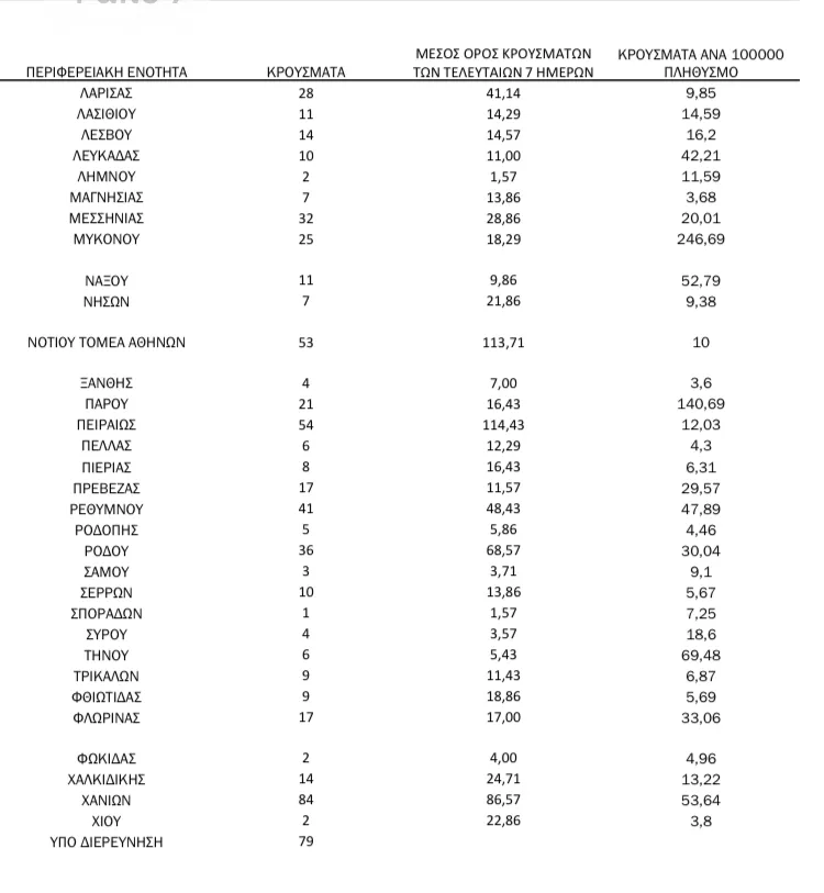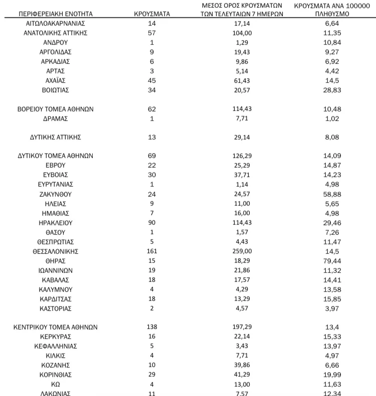 Αναλυτικότερα τα κρούσματα στις περιφερειακές ενότητες που ανήκουν στην Αττική: