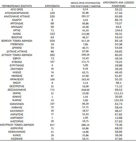Αναλυτικότερα τα κρούσματα στις περιφερειακές ενότητες που ανήκουν στην Αττική: