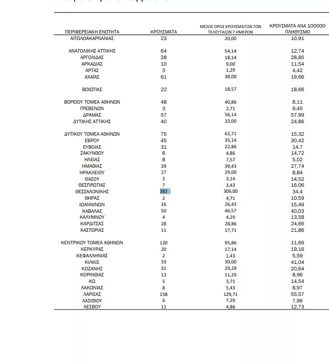 382 κρούσματα στην Π.Ε. Θεσσαλονίκης