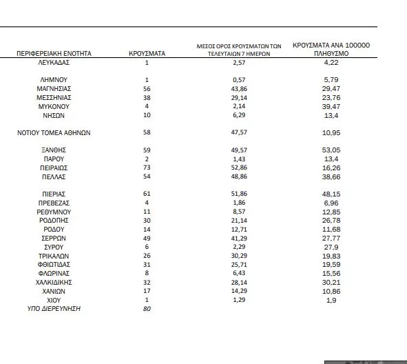 31 κρούσματα στην Π.Ε. Φθιώτιδας