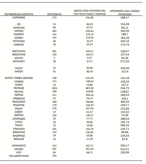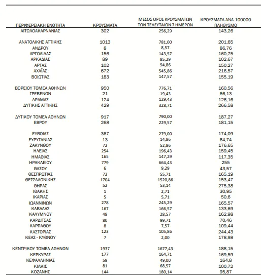 Αναλυτικότερα τα κρούσματα στις περιφερειακές ενότητες που ανήκουν στην Αττική: