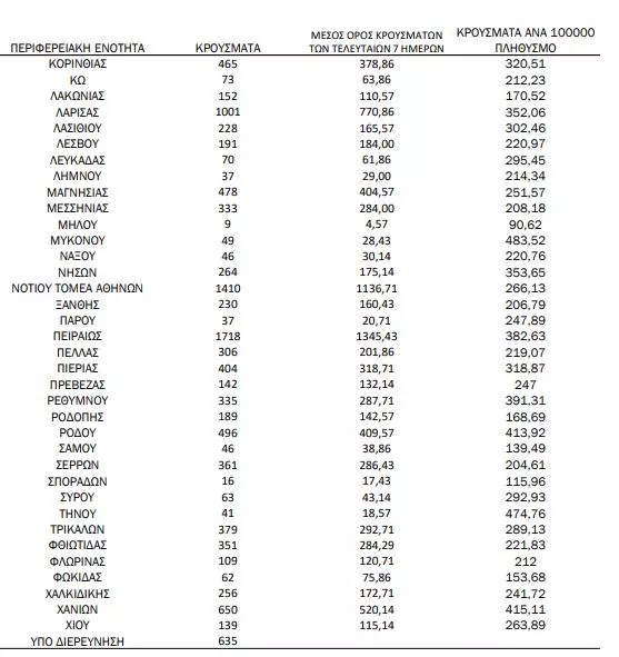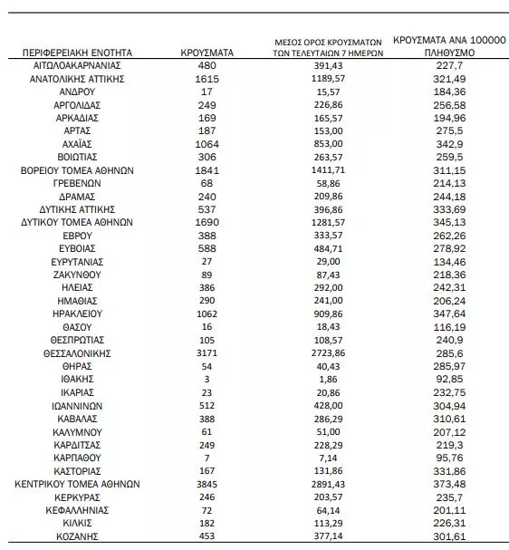 Αναλυτικότερα τα κρούσματα στις περιφερειακές ενότητες που ανήκουν στην Αττική: