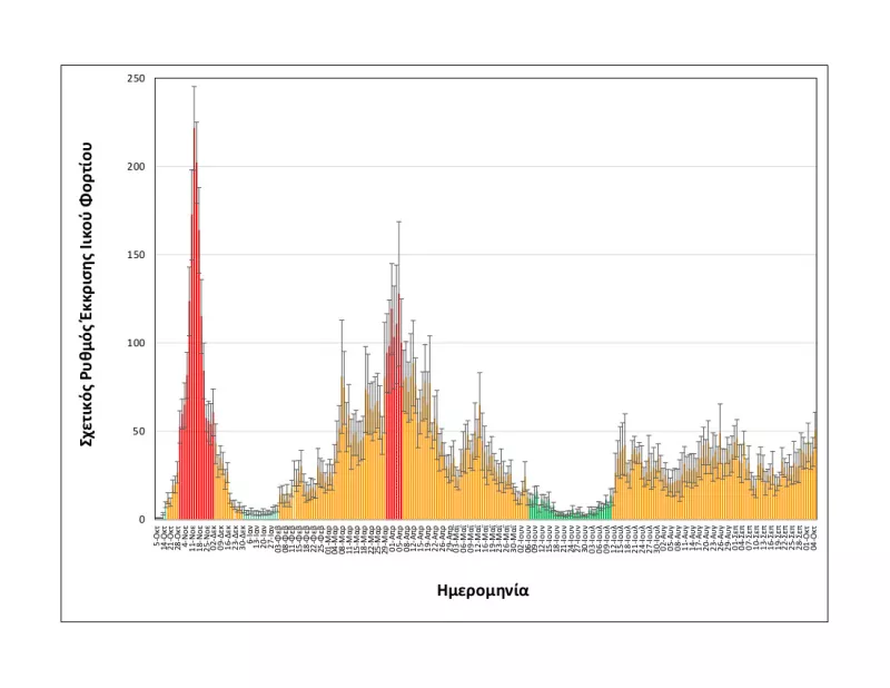 Ο κ. Δόβας εκτίμησε πως «οι διακυμάνσεις στα λύματα από εδώ και πέρα μπορεί να είναι κατά περίπτωση υψηλότερες από τα δηλωθέντα κρούσματα καθώς αυτές είναι αντιπροσωπευτικές του συνόλου της κοινότητας». «Η αύξηση στο ιικό φορτίο των λυμάτων που παρατηρούμε από τις 19 Σεπτεμβρίου και μετά, έχει ρυθμό διπλασιασμού ανά 16 ημέρες και εκτιμούμε ότι οφείλεται σε αυξημένη διασπορά του ιού στην κοινότητα μετά τις 13 Σεπτεμβρίου», διευκρίνισε.