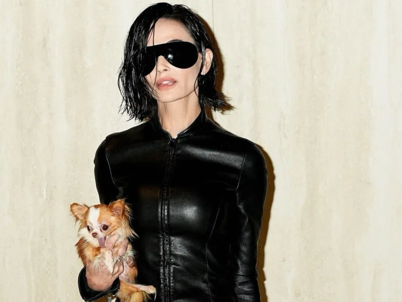 Η εμφάνιση, δια χειρός Demna Gvasalia, ολοκληρώθηκε με oversized γυαλιά ηλίου, μαύρη τσάντα και γόβες στιλέτο. Η ηθοποιός, έχοντας μαζί της την αγαπημένη της σκυλίτσα, τη Pilaf, παρακολούθησε το σόου, το οποίο το περιοδικό Elle χαρακτήρισε ως εμβληματικό των τάσεων από τα τέλη της δεκαετίας του '90 και της εποχής του Τομ Φορντ για τον οίκο.