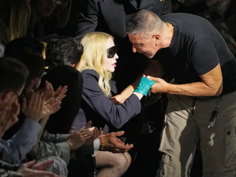 Βίντεο από το σόου έδειχνε την καλλιτέχνιδα να αγκαλιάζει τους Ιταλούς σχεδιαστές, Domenico Dolce και Stefano Gabbana. Δείχνοντας το αποκαλυπτικό σατέν φόρεμά της, η σταρ κάθισε στη συνέχεια στην πρώτη σειρά μαζί με τη Γουίντουρ, φορώντας μεγάλα γυαλιά ηλίου. Συνδύασε την εμφάνιση με διάφανο καλσόν, ένα oversized μαύρο σακάκι και ένα ζευγάρι γάντια. Η Μαντόνα συνοδευόταν στην επίδειξη μόδας από τον σύντροφό της, Akeem Morris, 29 ετών, με τον οποίο είναι σε σχέση από το 2024.