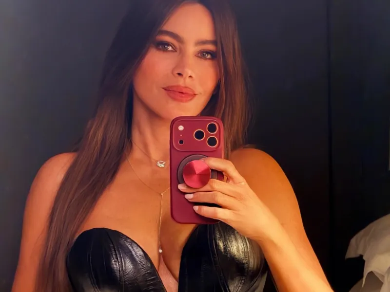 Η πρωταγωνίστρια του «Modern Family» εμφανίστηκε με ένα ιδιαίτερα εντυπωσιακό σύνολο: φόρεσε έναν μαύρο δερμάτινο κορσέ με βαθύ ντεκολτέ, τον οποίο συνδύασε με μαύρη φούστα με λεπτομέρειες δαντέλας στο τελείωμα και μαύρα πέδιλα. Η Βεργκάρα επέλεξε χρυσά κοσμήματα για να ολοκληρώσει το σύνολο -σκουλαρίκια, βραχιόλι και δαχτυλίδια- ενώ κρατούσε και μια μικρή μαύρη τσάντα.