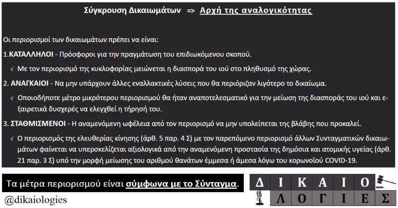 Παρατίθεται μία σύντομη εφαρμογή της αρχής της αναλογικότητας για τα μέτρα περιορισμού της Κυβέρνησης την περίοδο του «lockdown»”.