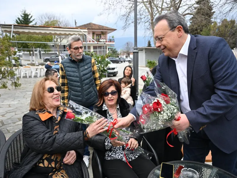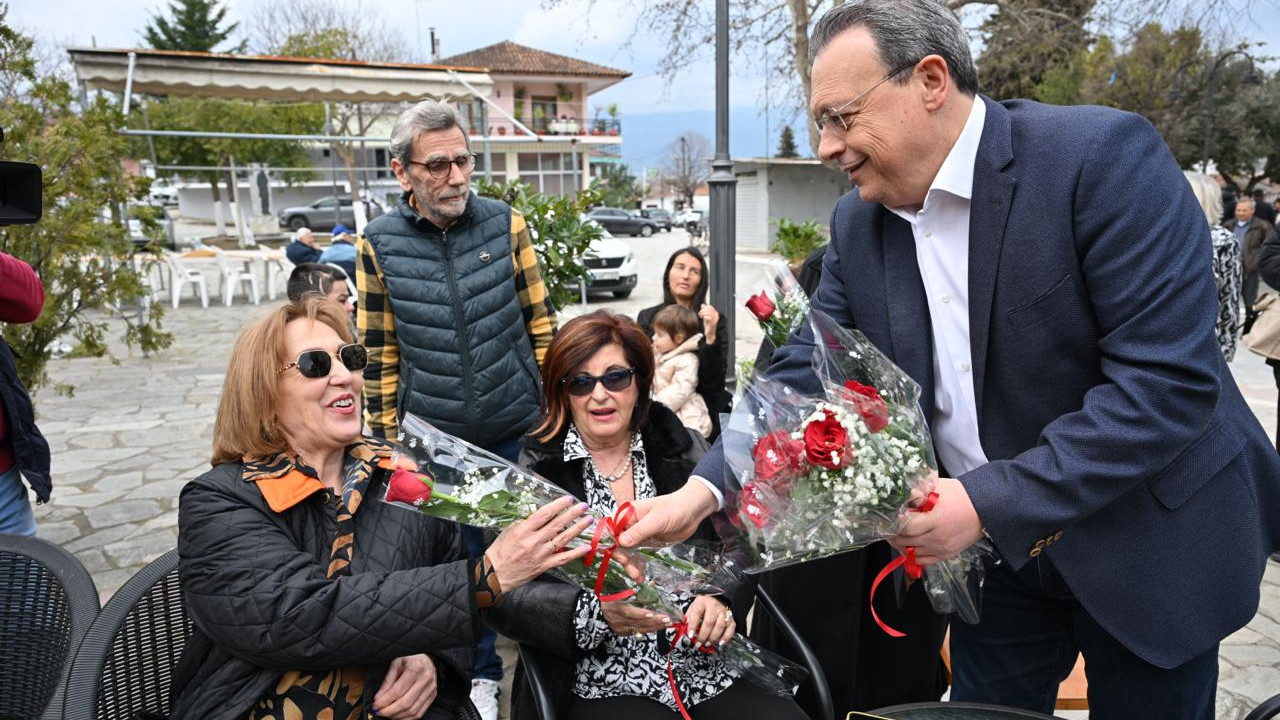 Ο πρόεδρος του ΣΥΡΙΖΑ συναντήθηκε και συζήτησε με γυναίκες από το Ομόλιο Λάρισας, στις οποίες προσέφερε συμβολικά από ένα κόκκινο τριαντάφυλλο.