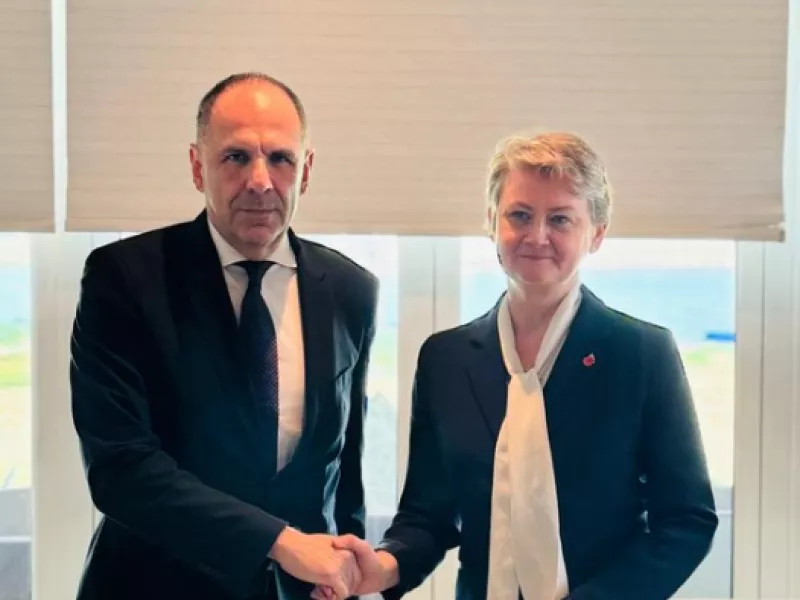 Ο Υπουργός Εξωτερικών, Γιώργος Γεραπετρίτης, συναντήθηκε σήμερα στη Μανάμα του Μπαχρέιν με την Υπουργό Εξωτερικών, Κοινοπολιτείας και Ανάπτυξης του Ηνωμένου Βασιλείου, Υβέτ Κούπερ.