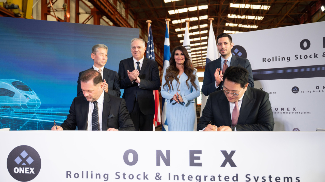 Μια νέα σελίδα για την σιδηροδρομική και βιομηχανική παραγωγή της χώρας άνοιξε σήμερα στην Ελευσίνα, με την υπογραφή μιας ιστορικής συμφωνίας μεταξύ της ONEX και της κορεατικής Sung Shin Rolling Stock Technology Ltd. Η συμφωνία προβλέπει τη δημιουργία του «Εθνικού Κέντρου Υποστήριξης Τροχαίου Υλικού» στα Ναυπηγεία Ελευσίνας, μια επένδυση ύψους τουλάχιστον 25 εκατ. ευρώ που φέρνει 100 νέες θέσεις εργασίας, εισαγωγή εξειδικευμένης τεχνογνωσίας στην τρενοεπισκευή και στρατηγική σιδηροδρομική σύνδεση με το Θριάσιο Εμπορευματικό Κέντρο.