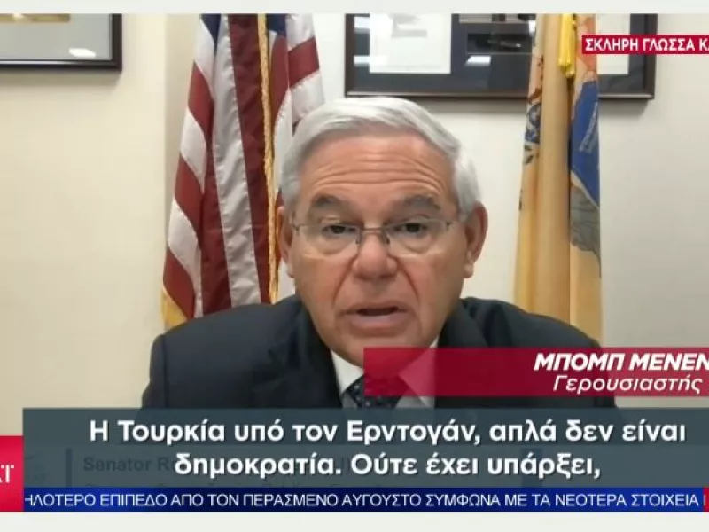 Ο αρχιτέκτονας του νόμου για τον East Med, Μπομπ Μενέντεζ διαβεβαίωσε πως ο ίδιος θα ασκήσει πίεση στον Μπάιντεν ώστε να προχωρήσει στην υλοποίηση των σχεδίων για ενεργειακή και αμυντική συνεργασία μεταξύ Ελλάδας, Κύπρου και Ισραήλ στην περιοχή, ενώ υποστήριξε πως ο Αμερικανός πρόεδρος θα είναι απόλυτα ξεκάθαρος στην συνάντησή του με τον Ερντογάν για τις επιλογές που υπάρχουν στο τραπέζι.