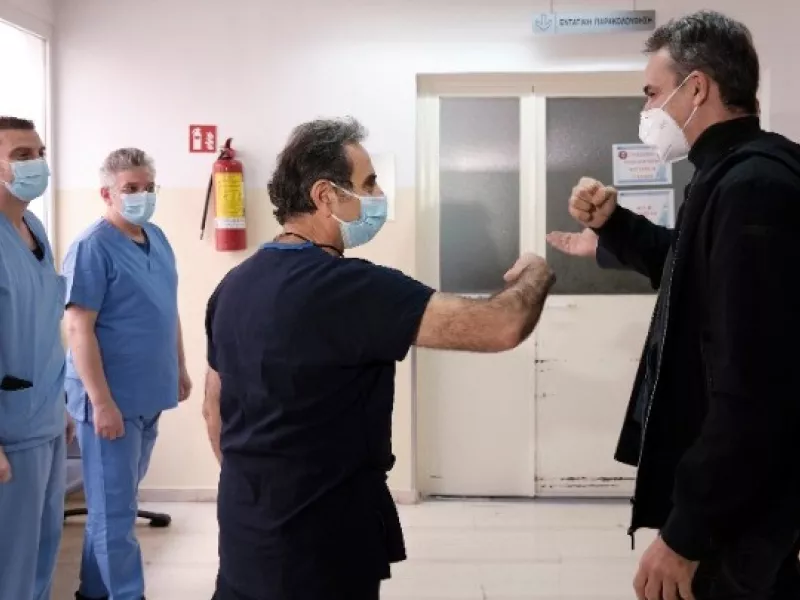 Στη συνέχεια, ο πρωθυπουργός πήγε έξω από τη ΜΕΘ και μίλησε με γιατρούς και νοσηλευτές και συζήτησαν για τα προβλήματα και τις συνθήκες υπό τις οποίες λειτουργούν. Τους ευχαρίστησε, δε, για τη μεγάλη, όπως υπογράμμισε, στήριξή τους. "Είμαστε στρατιώτες για να αντιμετωπίσουμε αυτή τη μάχη κι εσείς ήσασταν δίπλα μας. Σας ευχαριστούμε πάρα πολύ", ανέφερε, από την πλευρά της, η διευθύνουσα του νοσοκομείου.