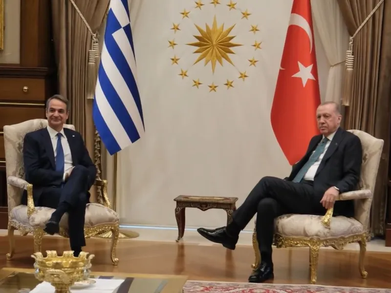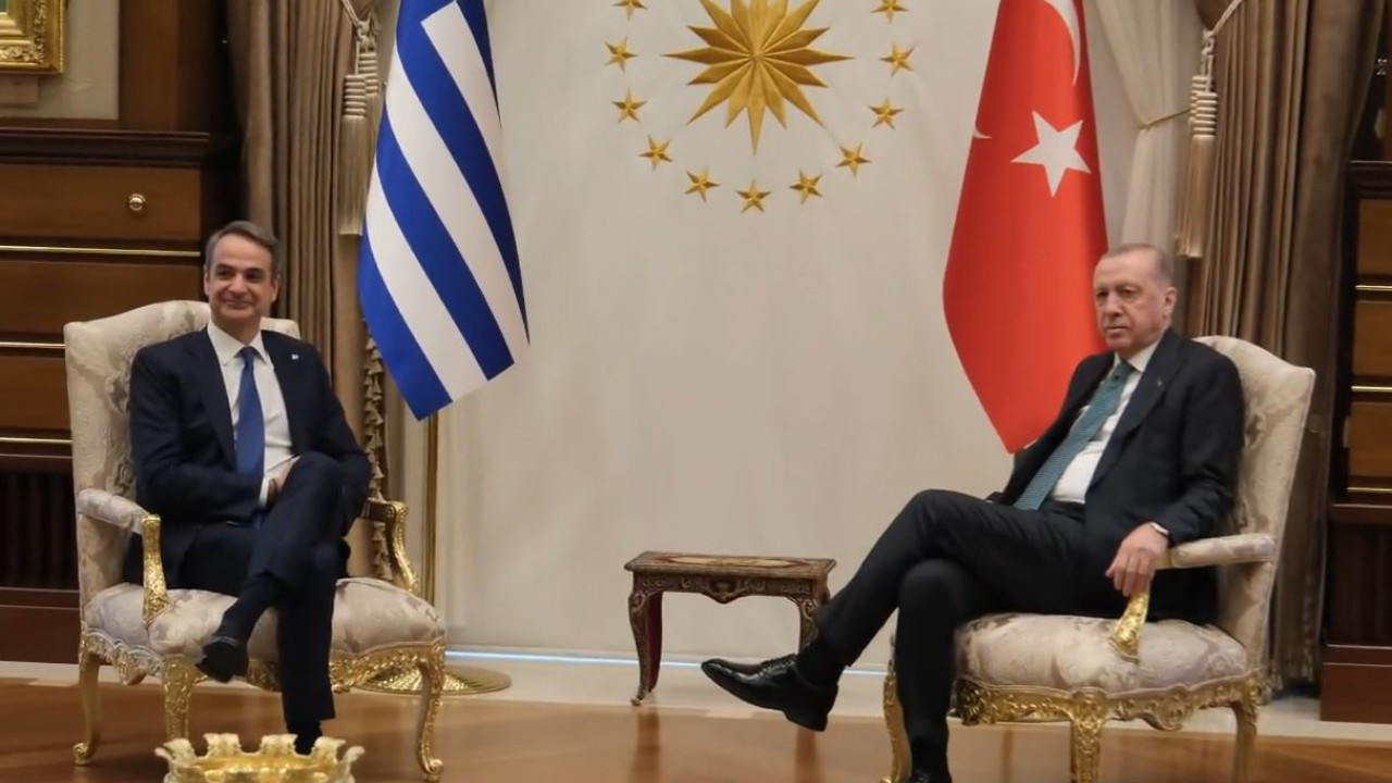 Στη συνάντηση Μητσοτάκη - Ερντογάν στο «παλάτι» του Τούρκου προέδρου, που βρίσκεται σε εξέλιξη, συμμετέχουν οι υπουργοί Εξωτερικών Γιώργος Γεραπετρίτης και Χακάν Φιντάν και οι διπλωματικοί σύμβουλοι των δύο ηγετών, ο πρέσβης Μίλτον Νικολαΐδης και ο Ακίφ Τσαγατάι Κιλίτς.