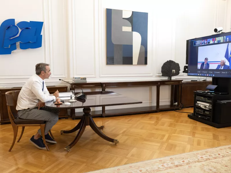 Ο πρωθυπουργός Κυριάκος Μητσοτάκης έλαβε μέρος το απόγευμα στην τηλεδιάσκεψη των ηγετών για την Ουκρανία που πραγματοποιήθηκε με πρωτοβουλία του Ηνωμένου Βασιλείου, της Γαλλίας και της Γερμανίας.