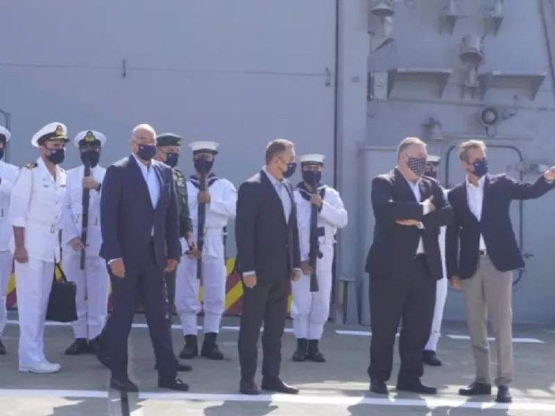Σημειώνεται πως κοινή επίσκεψη στη στρατιωτική βάση της Σούδας στην Κρήτη, πραγματοποίησαν το πρωί ο πρωθυπουργός Κυριάκος Μητσοτάκης και ο υπουργός Εξωτερικών των Ηνωμένων Πολιτειών Αμερικής Μάικ Πομπέο. Ενημερώθηκαν για τη λειτουργία της και στη συνέχεια επιβιβάστηκαν στην ελληνική φρεγάτα ΜΕΚΟ «Σαλαμίς» και στα αμερικανικά ταχύπλοα σκάφη CCM (Combat Craft Medium) που βρίσκονται στη ναυτική βάση στο Μαράθι. Ακολούθησε διευρυμένη συνάντηση στην 115 Πτέρυγας Μάχης.