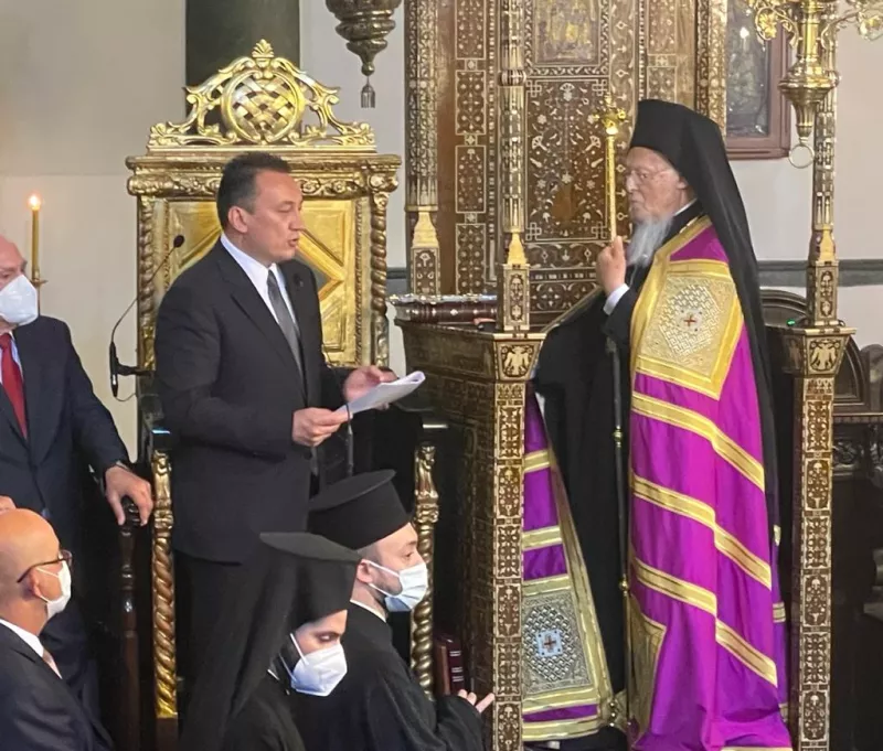 Ταξίδι "αστραπή" στην Κωνσταντινούπολη προκειμένου να τιμήσει τα ονομαστήρια της Α.Θ.Π. του Οικουμενικού Πατριάρχη κ.κ. Βαρθολομαίου, πραγματοποίησε ο Υφυπουργός Εξωτερικών κ. Κώστας Βλάσης. Ο κ. Βλάσης μετέβη στην Κωνσταντινούπολη όχι μόνο εντός του πλαισίου των αρμοδιοτήτων του επί των Εκκλησιαστικών και Θρησκευτικών Υποθέσεων, αλλά κυρίως λόγω της θερμής σχέσης και της πολύ καλής επικοινωνίας που ο Αρκάς Υφυπουργός έχει οικοδομήσει όλα αυτά τα χρόνια με τον Οικουμενικό Πατριάρχη.