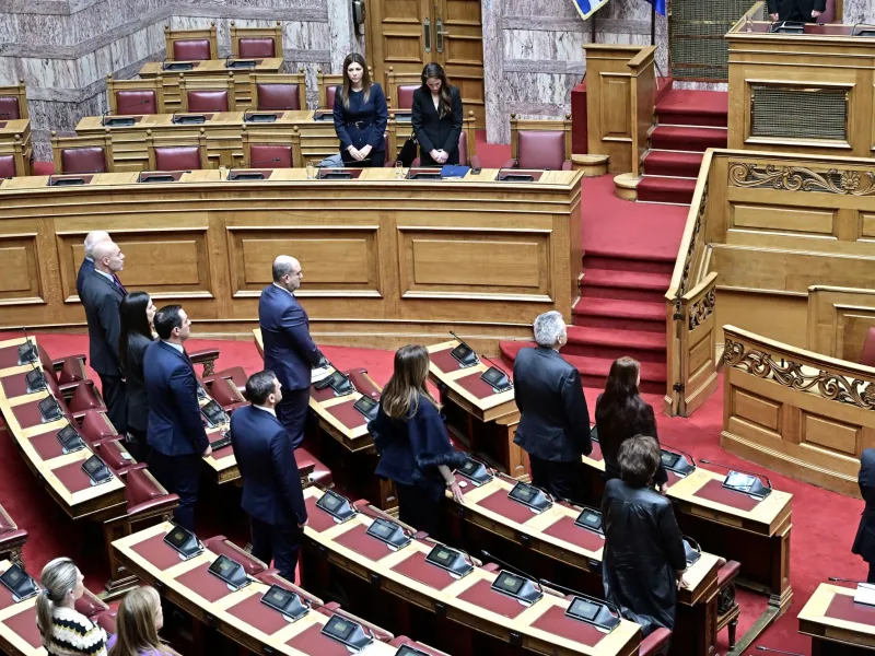 Ολομέλεια της Βουλής τίμησε με ενός λεπτού σιγή τη μνήμη των 57 θυμάτων της σιδηροδρομικής τραγωδίας των Τεμπών, με αφορμή τη συμπλήρωση τριών χρόνων από το τραγικό δυστύχημα.