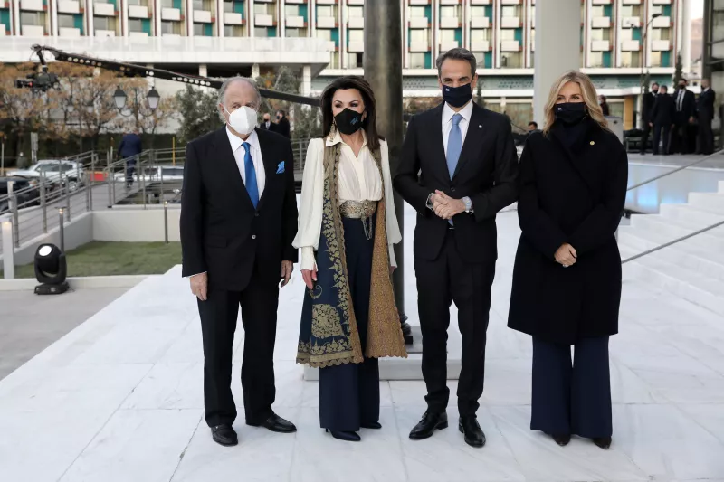 Ο πρωθυπουργός Κυριάκος Μητσοτόκης και η σύζυγός του Μαρέβα Γκραμπόφσκι- Μητσοτάκη υποδέχθηκαν τους επίσημους προσκεκλημένους στο νέο συγκρότημα της Εθνικής Πινακοθήκης, με αφορμή τη συμπλήρωση 200 ετών από την Επανάσταση του 1821.