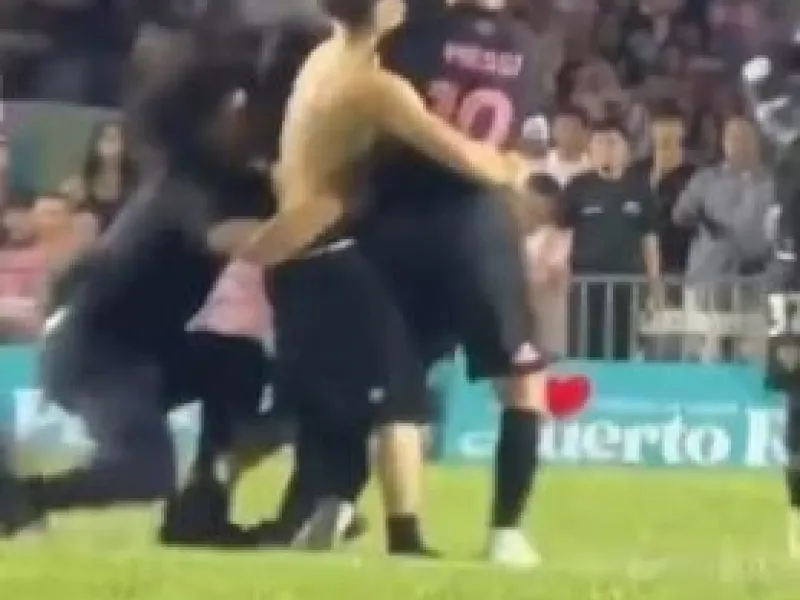 Ο Λιονέλ Μέσι ρίχθηκε στο... έδαφος από άνδρα ασφαλείας που προσπαθούσε να ακινητοποιήσει έναν ημίγυμνο φίλαθλο, λίγο πριν από το τέλος της φιλικής νίκης της Ίντερ Μαϊάμι με 2-1 επί της πρωταθλήτριας Ισημερινού Ιντεπεντιέντε ντελ Βάγε, στο Πουέρτο Ρίκο.