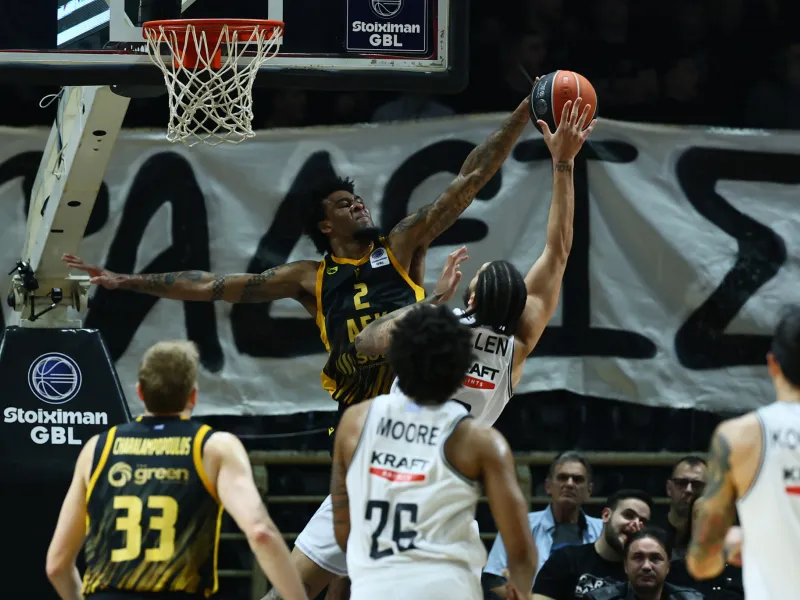 Με μία εκπληκτική εμφάνιση σε άμυνα και επίθεση, η ΑΕΚ νίκησε τον ΠΑΟΚ στη Θεσσαλονίκη και καθίσταται πλέον το απόλυτο φαβορί για την κατάκτηση της τρίτης θέσης της κανονικής περιόδου στη Stoiximan GBL, ενώ συνέχισε το τρομερό της σερί σε Ελλάδα και Ευρώπη με δώδεκα συνεχόμενες νίκες.