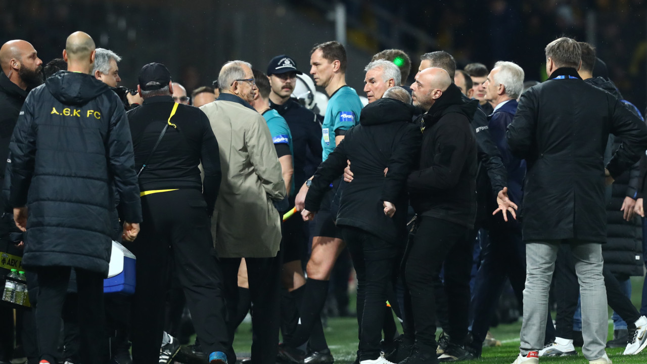 από τα οποία προκύπτει ότι στις 01/02/2026, στην αθλητική εγκατάσταση ALLWYN ARENA, στη Ν. Φιλαδέλφεια Αττικής, με τη λήξη του αγώνα μεταξύ των ομάδων ΠΑΕ ΑΕΚ - ΠΑΕ ΟΛΥΜΠΙΑΚΟΣ ΣΦΠ, για τη SUPERLEAGUE 1, περιόδου 2025/2026, δύο ταυτοποιημένοι φίλαθλοι της γηπεδούχου ομάδας, από τη θύρα 33 της ως άνω αθλητικής εγκατάστασης, εκτόξευσαν εναντίον των ποδοσφαιριστών και αξιωματούχων της φιλοξενούμενης ομάδας μία σπαστή ομπρέλα βροχής,