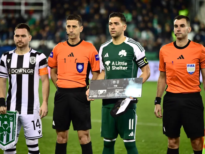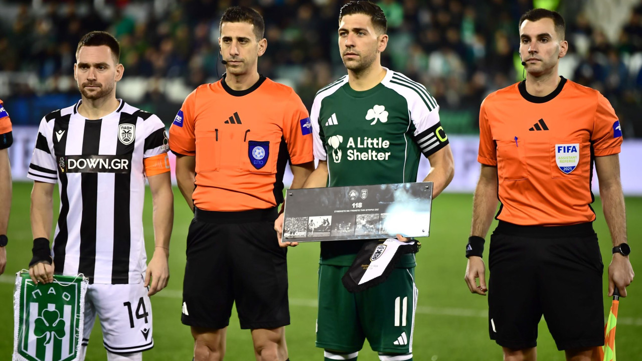 Πριν την έναρξη του ματς, ο Αντρίγια Ζίβκοβιτς ως αρχηγός του «δικεφάλου του βορρά» κρατούσε και μια πλακέτα για να δώσει στον captain των «πράσινων», Τάσο Μπακασέτα.