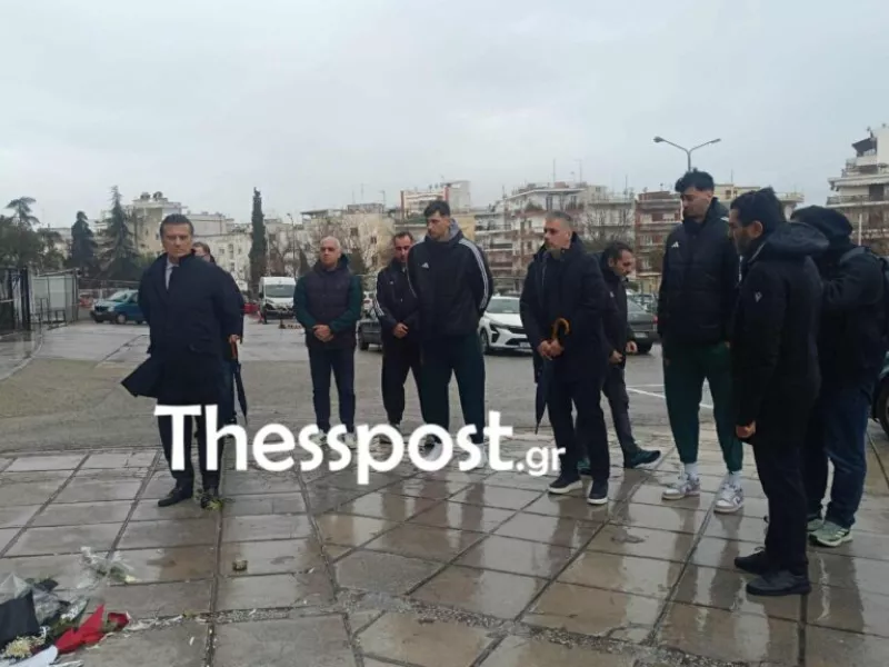 Ο πρόεδρος της ΚΑΕ, Βασίλης Παρθενόπουλος, οι συνεργάτες του Εργκίν Αταμάν, Χρήστος Σερέλης και Σάββας Καμπερίδης, οι διεθνείς παίκτες Ντίνος Μήτογλου και Αλέξανδρος Σαμοντούροβ, καθώς και ο τζένεραλ μάνατζερ, Δημήτρης Κοντός, άφησαν λουλούδια έξω από το γήπεδο του ΠΑΟΚ.