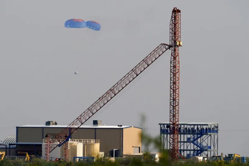 Ο δισεκατομμυριούχος ιδρυτής της Amazon Τζεφ Μπέζος και οι υπόλοιποι επιβαίνοντες του πυραύλου New Shepard εκτοξεύθηκαν στο διάστημα από την έρημο του δυτικού Τέξας και επέστρεψαν στη Γη περίπου 11 λεπτά αργότερα.