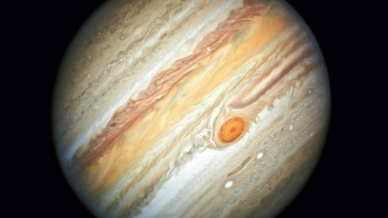 Ο Δίας, πέμπτος από τον Ήλιο, είναι τόσο τεράστιος που όλοι οι υπόλοιποι πλανήτες θα μπορούσαν να χωρέσουν στο εσωτερικό του, συμπεριλαμβανομένων περισσότερων από 1.300 Γαιών. Αποτελείται κυρίως από υδρογόνο και ήλιο, με ίχνη άλλων αερίων. Ισχυροί άνεμοι, που εμφανίζονται ως λωρίδες, και μερικές μεγάλες καταιγίδες κυριαρχούν στην πολύχρωμη εξωτερική του όψη.