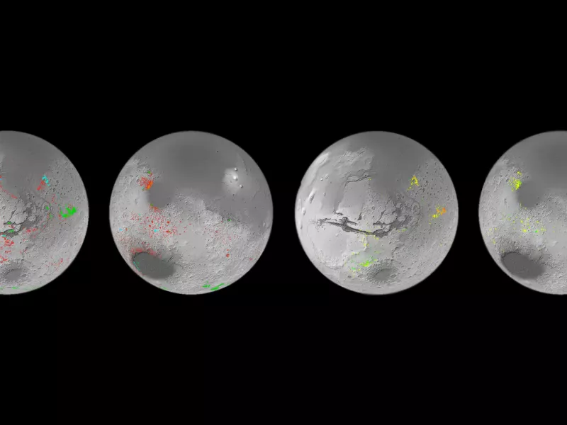 Συγκεκριμένα, ο χάρτης δείχνει τις θέσεις και τις αφθονίες των υδατικών ορυκτών. Αυτά προέρχονται από πετρώματα που έχουν αλλοιωθεί χημικά από τη δράση του νερού στο παρελθόν και έχουν τυπικά μετατραπεί σε άργιλο και άλατα.