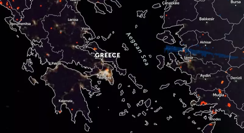 Εντυπωσιακές δορυφορικές εικόνες από το πύρινο μέτωπο της Βαρυμπόμπης χθες και σήμερα.