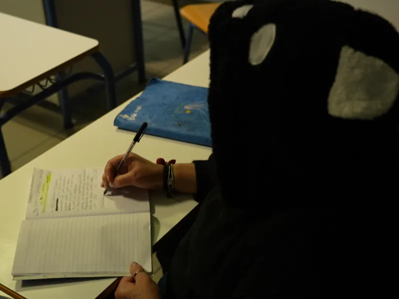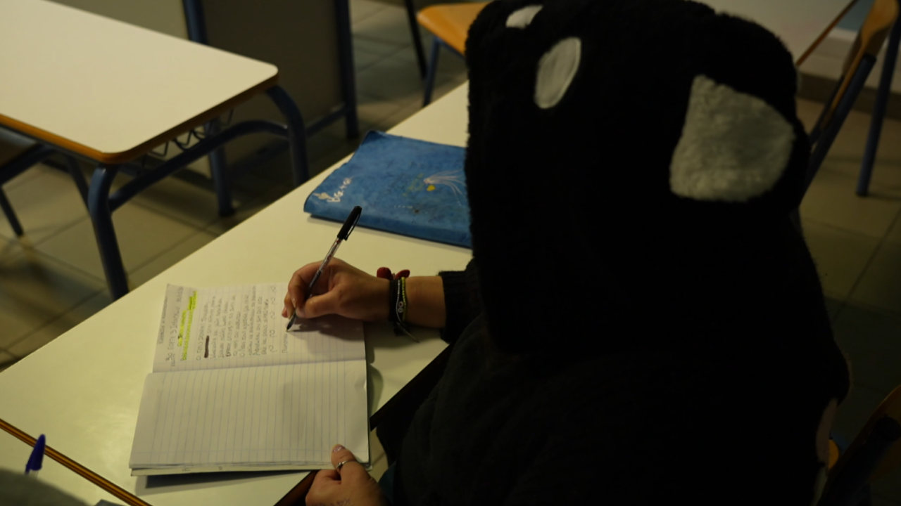 Μητέρα κρατούμενη παρακολουθεί μαζί με την 2,5 ετών κόρη της τα μαθήματα των φυλακών, υπογραμμίζοντας πως ελληνικά έμαθε ουσιαστικά να γράφει και να μιλά μέσα στη φυλακή.