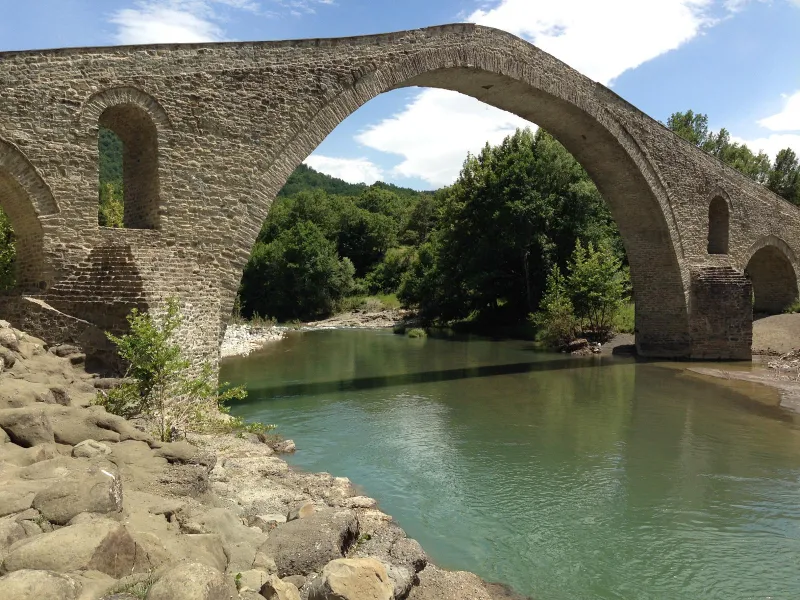 Το μεγαλοπρεπές αυτό γεφύρι κατασκευάστηκε πάνω στον παλιό εμπορικό δρόμο που συνέδεε την Ήπειρο με την Μακεδονία, ενώ διακρινόταν ως ένα από τα πιο πρωτοποριακά γεφύρια της εποχής του. Ξένοι περιηγητές του 19ου αιώνα που πέρασαν από το γεφύρι, έγραψαν πως στην είσοδο υπήρχε σκόπιμα ένα μικρό κουδουνάκι που προειδοποιούσε όποιον περαστικό ήθελε να διασχίσει το γεφύρι για τον κίνδυνο ισχυρών ανέμων, που ενδεχομένως θα μπορούσαν να τον ρίξουν στα παγωμένα νερά του ποταμού.