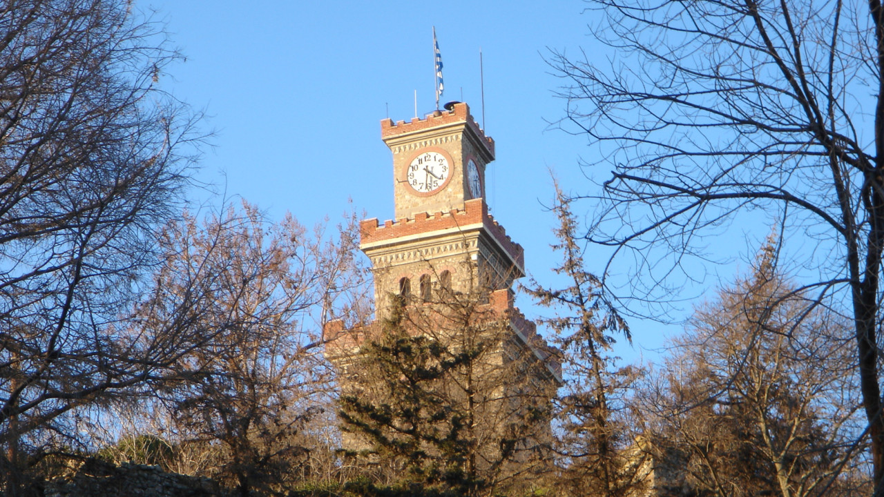 - Στο δεύτερο διάζωμα υψώνεται ο κεντρικός πύργος, ύψους 33 μέτρων, με το περίφημο ρολόι των Τρικάλων, που αποτελεί εμβληματικό τοπόσημο και σύμβολο της πόλης