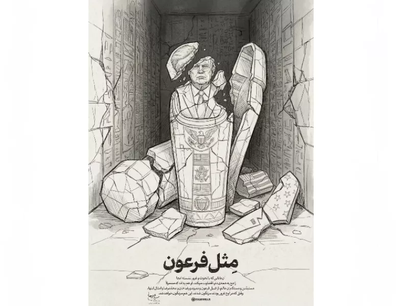 Ένα μήνυμα που δημοσιεύτηκε δίπλα στη γελοιογραφία αναφέρεται σε μονάρχες όπως οι Φαραώ της αρχαίας Αιγύπτου και ο Νεβρώδ, μια βιβλική φιγούρα του βιβλίου της Γένεσης, προειδοποιώντας ότι «ανατράπηκαν όταν βρίσκονταν στο απόγειο της υπερηφάνειάς τους». Αναφέρεται επίσης στον Ρεζά Χαν και τον Μοχάμεντ Ρεζά, τον πρώτο και τον δεύτερο Ιρανό σάχη της δυναστείας των Παχλαβί.