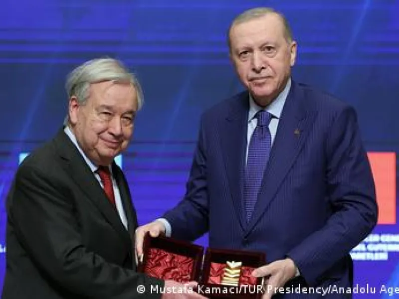 Tο Διεθνές Βραβείο Ειρήνης Ατατούρκ στον Γενικό Γραμματέα των Ηνωμένων Εθνών Αντόνιο Γκουτέρες, ο οποίος βρέθηκε χθες στην Άγκυρα ως τιμώμενο πρόσωπο.Ανταπόκριση από την Κωνσταντινούπολη