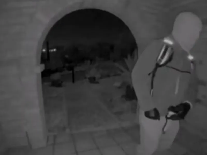 Οι εικόνες δείχνουν έναν μασκοφόρο άνδρα που φορά γάντια, σακίδιο πλάτης και φέρει πιστόλι σε θήκη, στην εξώπορτα του σπιτιού της Νάνσι Γκάθρι στην περιοχή του Τούσον, περίπου την ώρα που οι ερευνητές εκτιμούν ότι απήχθη, την 1η Φεβρουαρίου.