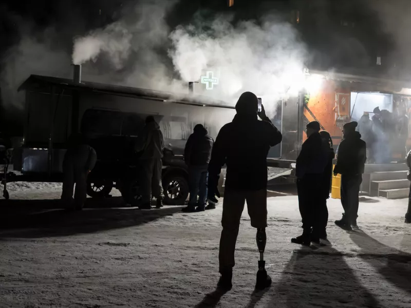 Οι θερμοκρασίες έπεσαν νωρίς σήμερα το πρωί στους -17 βαθμούς Κελσίου στο Κίεβο και στους -23 βαθμούς Κελσίου στο Χάρκοβο, τη δεύτερη μεγαλύτερη πόλη της χώρας, όπου δύο άνθρωποι τραυματίσθηκαν επίσης από νυκτερινό πλήγμα.