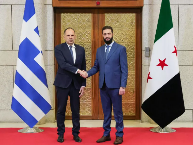 Μετά την Ινδία και τα Ηνωμένα Αραβικά Εμιράτα, ο υπουργός Εξωτερικών Γιώργος Γεραπετρίτης πραγματοποιεί σήμερα (9/2) επίσκεψη στη Συρία. Νωρίτερα είχε συνάντηση στη Δαμασκό με τον μεταβατικό πρόεδρο Αλ Σάρα και τον υπουργό Eξωτερικών Ασάντ Αλ Σαϊμπανί.